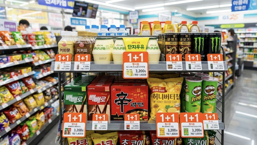 4. "One-plus-one" (원플러스원) – The Magic of BOGO If you see this sign in a Korean convenience store or a cosmetics shop (like Olive Young), get your wallet ready. In English-speaking countries, this is often called BOGO (Buy One Get One free).